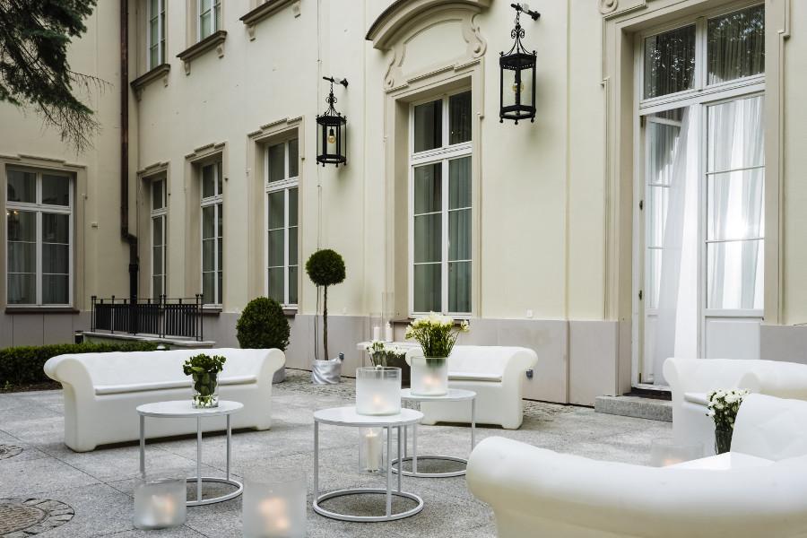 Wszystkie Sale połączone są dużymi drzwiami, dzięki którym można w dowolny sposób aranżować pałacową przestrzeń. Takie rozwiązanie pozwala zorganizować przyjęcie weselne w niestandardowy sposób. Rolę Sali Balowej pełni reprezentacyjna Sala Kolumnowa, w pozostałych Salach natomiast może być zaaranżowana część zasiadana. Elegancji przyjęciu weselnemu dodają: duże okrągłe stoły, stylowe obrusy i wyrafinowana zastawa.