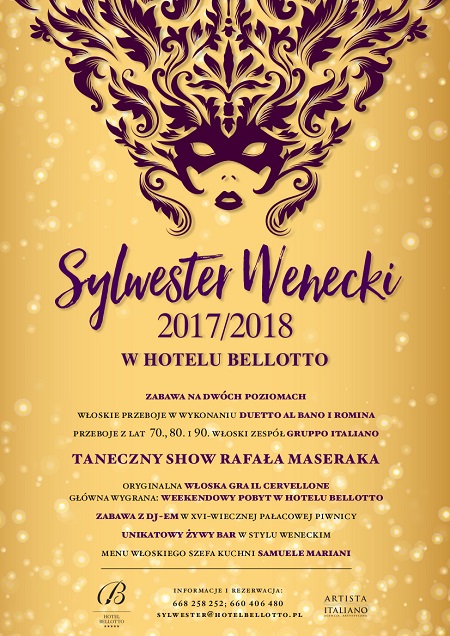 Nel programma pianobar dal vivo in stile veneziano, la musica italiana del Duetto Al Bano e Romina, Gruppo Italiano, e lo show danzante della star della serata Rafał Maserak. Il menù d’autore creato dallo chef italiano Samuele Mariani. I nostri ospiti avranno l’occasione di giocare al gioco “Il Cervellone” – il premio principale: un weekend in Hotel Bellotto.